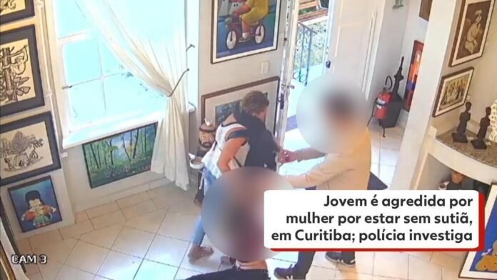 Uma mulher está sendo investigada pela Polícia Civil do Paraná (PCPR) por agredir uma jovem de 18 anos por, supostamente, ela estar sem sutiã. O caso aconteceu no Centro de Curitiba, no dia 16 de julho. Uma câmera registrou o momento em que a vítima foi violentada com socos na cabeça e puxões de cabelo.