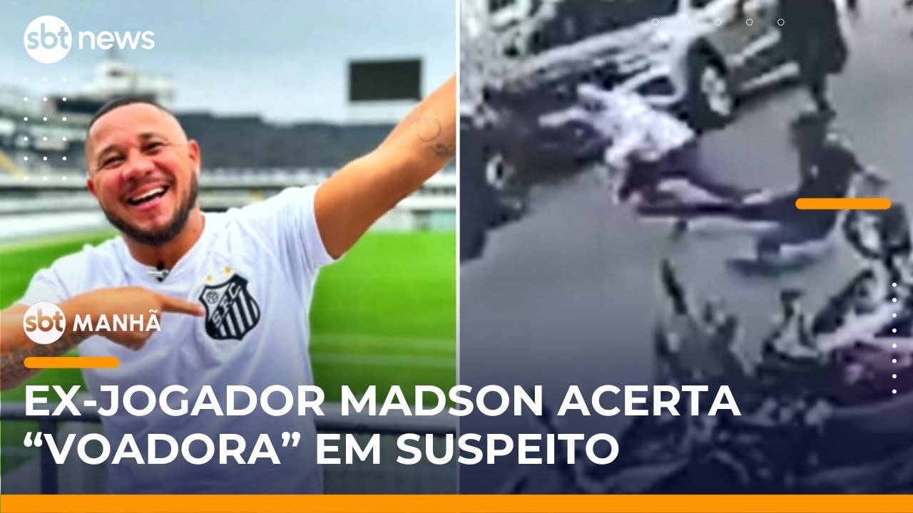 Madson, ex-jogador do Santos, impediu um assalto em Santos (SP) com uma “voadora”. O suspeito roubou uma corrente de ouro de um cliente da barbearia do ex-atleta e tentava fugir. Madson correu atrás do homem e o derrubou com um golpe certeiro. A polícia foi acionada, prendeu o suspeito e recuperou o objeto roubado.