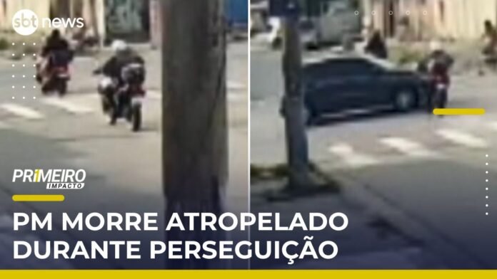 Um policial militar morreu após ser atropelado enquanto perseguia dois criminosos em São Vicente, no litoral de São Paulo. Câmeras de segurança registraram o momento em que ele, em alta velocidade, entrou na via para cercar os suspeitos em um carro e foi atingido por outro veículo. O motorista prestou socorro, mas o policial não resistiu aos ferimentos. Os suspeitos seguem foragidos.
