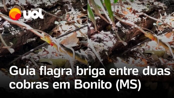 Vídeos Veja Vídeo – Cobra caninana e cobra cipó brigam no MS; guia de turismo flagra embate 1 de outubro de 2025 FacebookTwitterPinterestWhatsApp O guia de turismo Célio Araújo flagrou uma briga entre duas cobras no Rio Sucuri, em Bonito