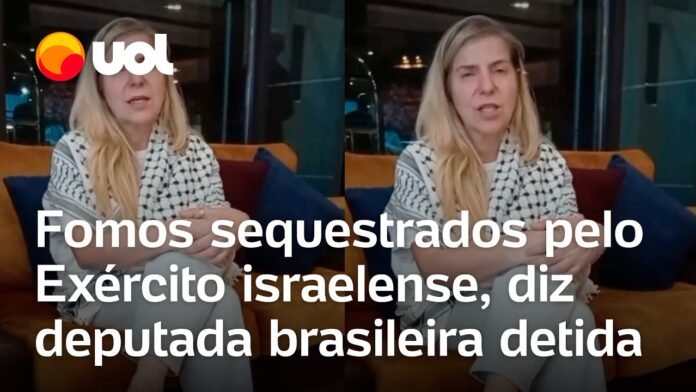 Vídeos Veja Vídeo – Deputada detida em Israel diz que foi sequestrada pelo Exército: ‘Estávamos chegando em Gaza’ 8 de outubro de 2025 FacebookTwitterPinterestWhatsApp Deputada detida em Israel diz que foi sequestrada pelo Exército: ‘Estávamos chegando em Gaza’.