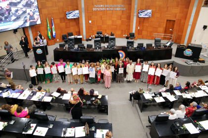 A Assembleia Legislativa de Mato Grosso (ALMT) homenageou 158 mulheres durante a cerimônia “Mulheres que constroem Mato Grosso”, realizada na noite desta terça-feira (14), no Plenário das Deliberações Deputado Renê Barbour.
