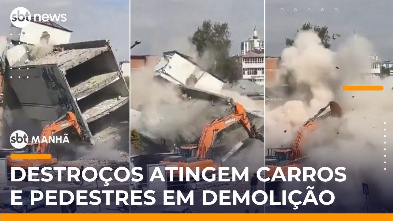 Um acidente grave foi registrado durante a demolição de um prédio na Turquia. A empresa responsável não isolou a área nem interrompeu o tráfego, e os destroços atingiram pedestres e veículos. Câmeras de segurança flagraram o momento em que a estrutura desaba, espalhando concreto pela rua. Uma pessoa ficou gravemente ferida. A falta de medidas de segurança é investigada pelas autoridades locais.