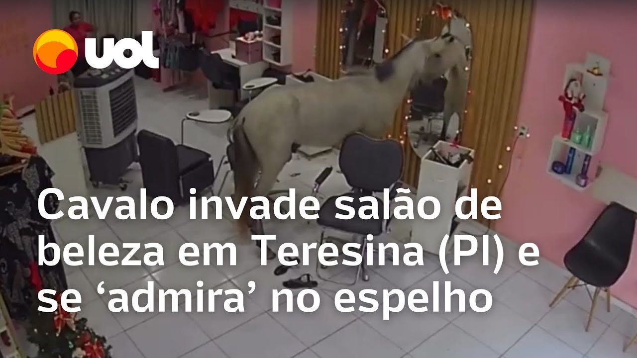 Vídeos Veja Vídeo – Cavalo invade salão de beleza em Teresina (PI) e se ‘admira’ no espelho; veja 14 de novembro de 2025 FacebookTwitterPinterestWhatsApp Um cavalo entrou em um salão de beleza e assustou clientes na terça-feira (11), em Teresina, no Piauí. O vídeo inusitado viralizou nas redes sociais.