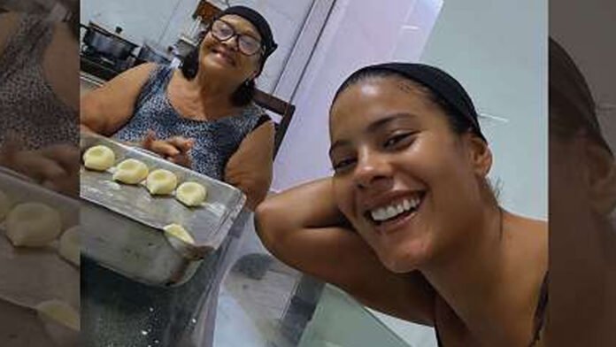 Bella também mostrou que colocou a mão na massa para preparar bolo de queijo, além de registrar cenas comuns em famílias cuiabanas: cerveja, banana frita, peixada, presentes, camisa do Cuiabá e até um cochilo depois do almoço.