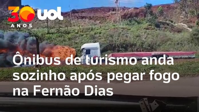 Vídeos Veja Vídeo – Ônibus em chamas anda sozinho e causa interdição completa na Fernão Dias, em MG 10 de janeiro de 2026 FacebookTwitterPinterestWhatsApp Um ônibus de turismo andou sozinho após pegar fogo na Fernão Dias, em Igarapé (MG), nesta sexta-feira (9). A rodovia chegou a ser totalmente interditada.