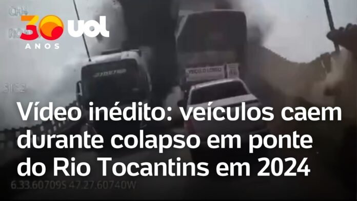 Imagens inéditas mostram o desabamento da ponte Juscelino Kubitschek, na TO-226, entre Tocantins e Maranhão, registrado de dentro da cabine de um caminhão. O flagrante detalha o colapso da estrutura ocorrido em 2024, pouco antes da reconstrução e inauguração da nova ponte em 2025.