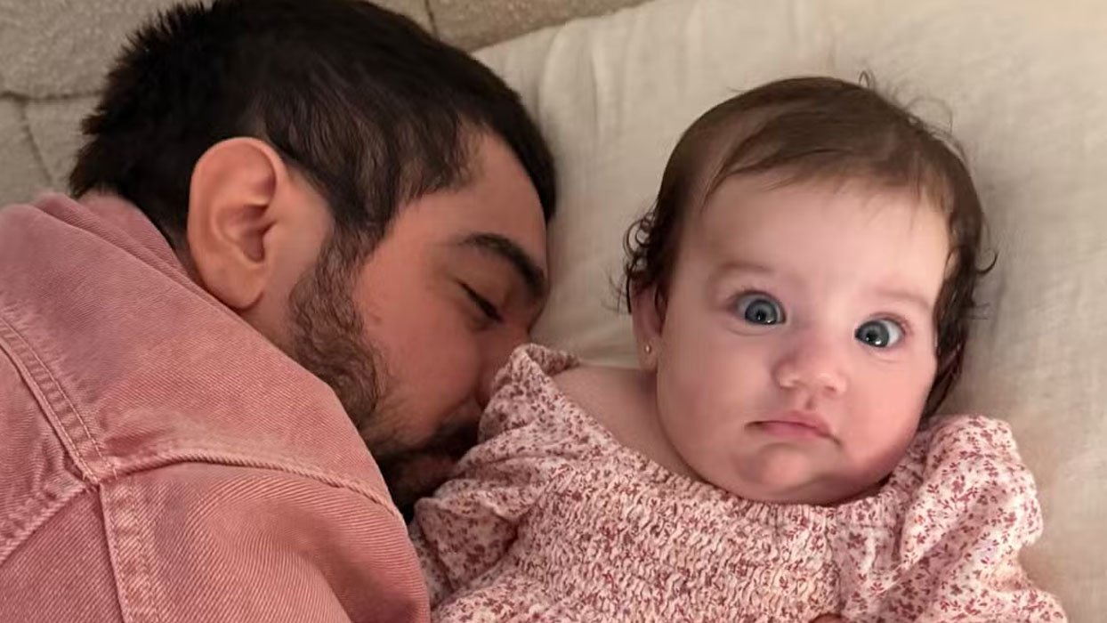 Na legenda, Rafa se divertiu com a cena e escreveu: “Ai meu Deus, ele já vai começar a sessão de ataques de amor”, mostrando que as trocas de carinho entre pai e filha são frequentes e fazem parte da rotina da família.