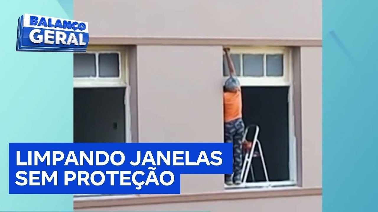 Veja Vídeo – Faxineira é flagrada limpando janela pelo lado de fora a 15 metros do chão em SP